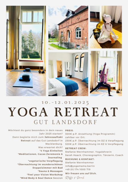 10. - 12. Januar 2025: Steffi entführt Euch zusammen mit - der Choreographin, Tänzerin, Coach - Sarah zum Jahresauftakt nach Landsdorf